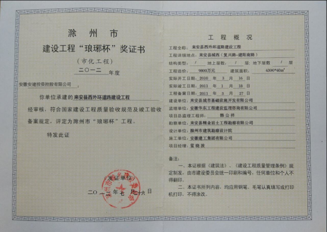 • 熱烈祝賀S312滁來路通車2012-12-09